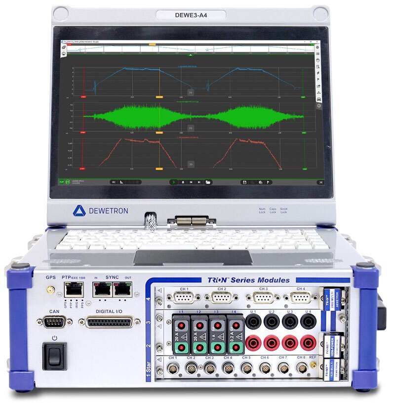 DEWE3-A4支持所有高速TRION3和TRION模塊。DEWETRON為幾乎所有傳感器和輸入提供TRION(3)模塊,如電流、電壓、功率、振動(IEPE)、橋(應變計)、電位器、RTD、CAN、計數(shù)器輸入、熱電偶等。使用外部時間源進行同步,如GPS、PTP或IRIG。